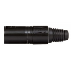 (16)3-biegunowe męskie złącze kablowe z czarną metalową obudową i złotymi stykami Kolejna generacja uznanego na całym świecie standardu złączy kablowych XLR. Następca serii X oferuje kilka nowych funkcji, które sprawiają, że jest bardziej niezawodny, łatwiejszy w montażu i poprawia integralność styków, a także odciążenie kabla.